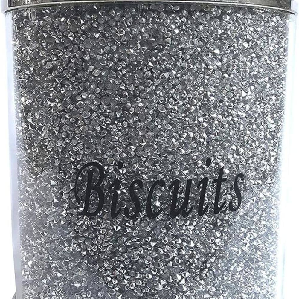 Silver Crushed Diamond Biscuit Canister Jar-H22cm Crystal Filled Kitchen Storage