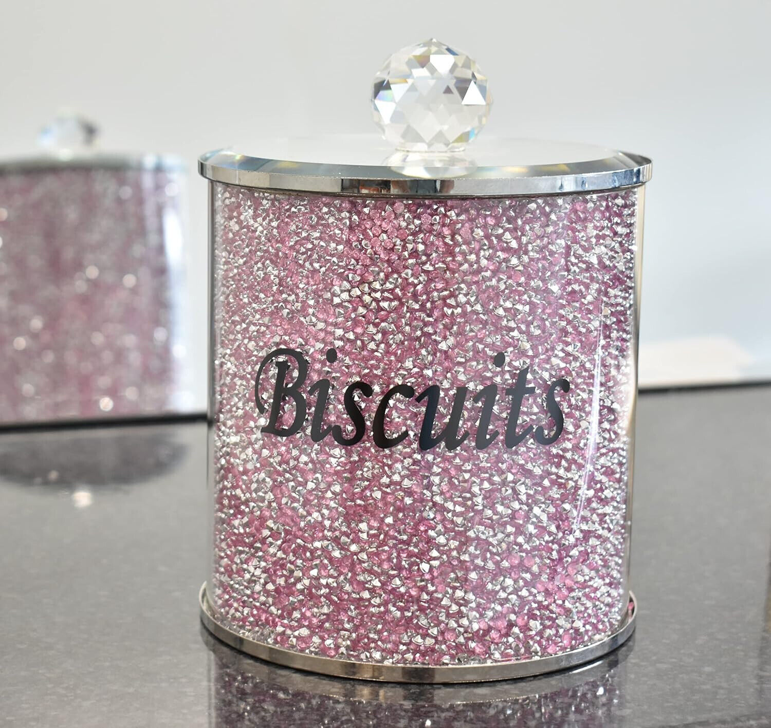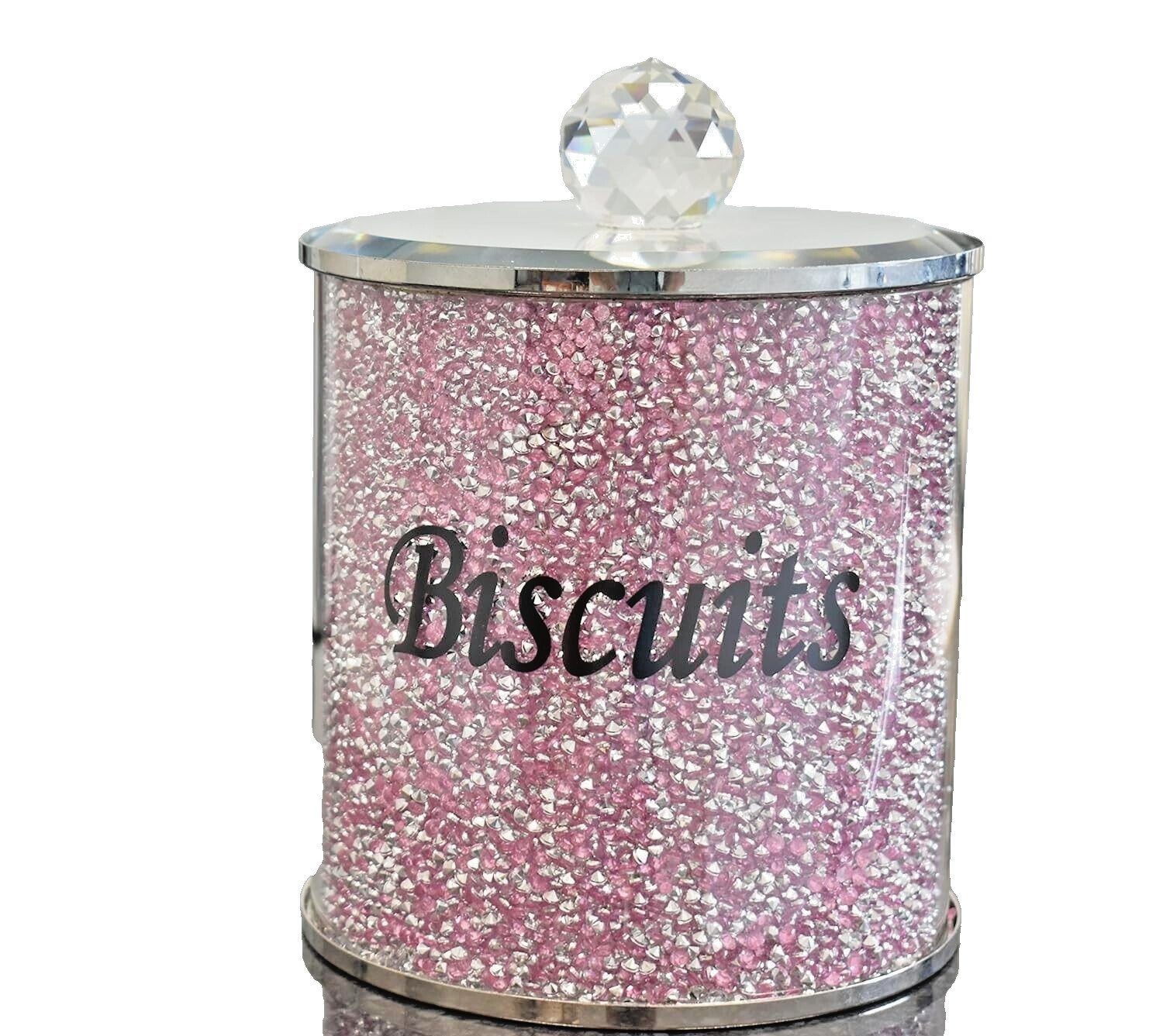 Pink Biscuit Cookie Jar Canister Crushed Diamond Filled Bling Gift 22cm
