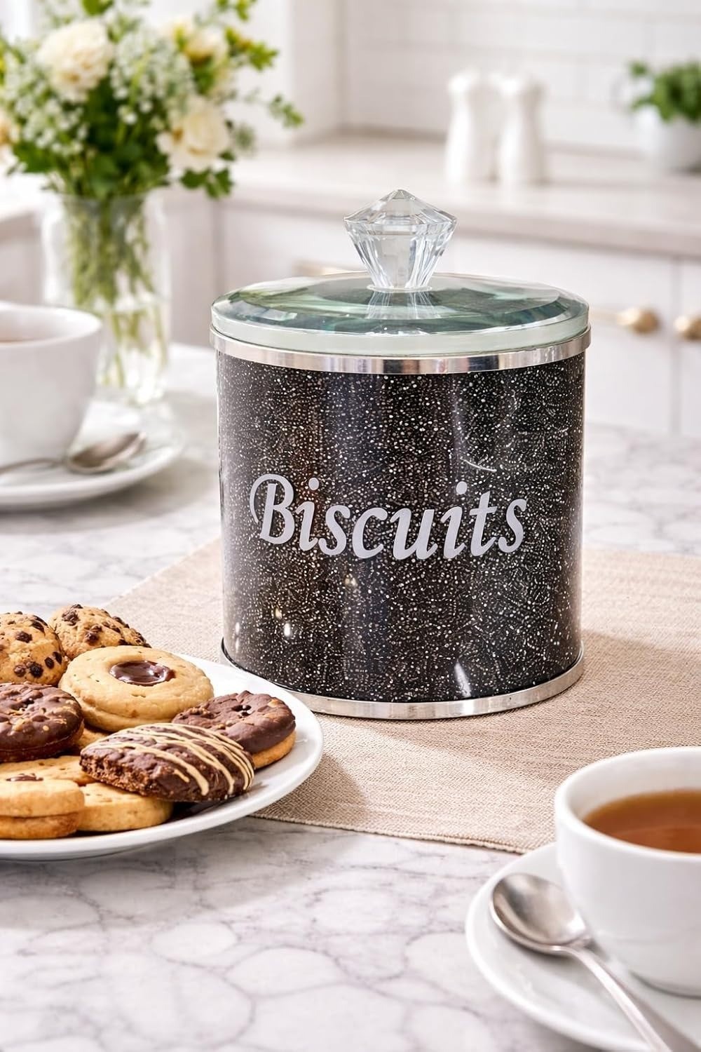 Silver Crushed Diamond Crystal Biscuit/Cookies Canister Jar Tin Kitchen Storage