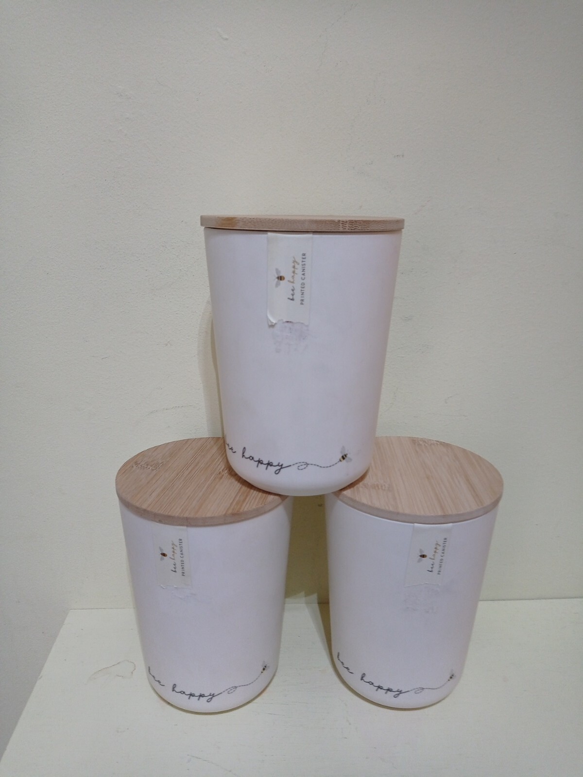 3 X Biscuit Sugar Storage Jar Canister 14cm white 'bee happy' bamboo lid