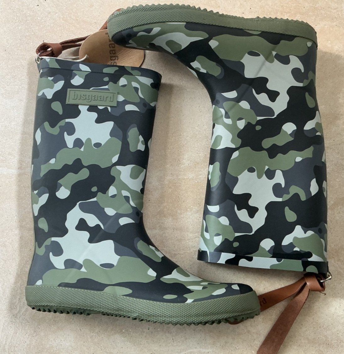 Bisgaard Camouflage Rubber Boots Kids Wellies + Drawstring Bag 2/35 BNWT Camo