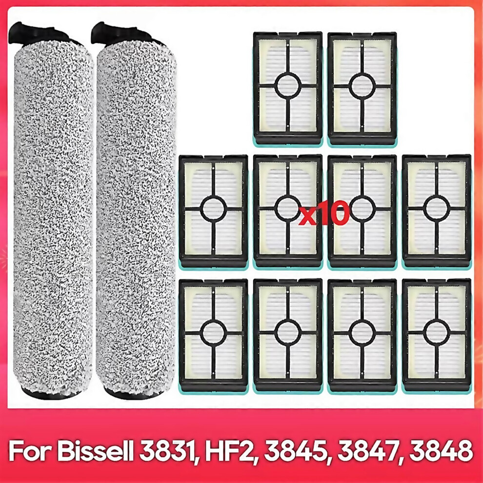 Replacement Parts For Bissell CrossWave HF2 3845N 3831 Floor Scrubber, Wet Dry Vacuum Cleaner Accessory, 2 Roller Brush, 2 Hepa Filters, 1 Brush