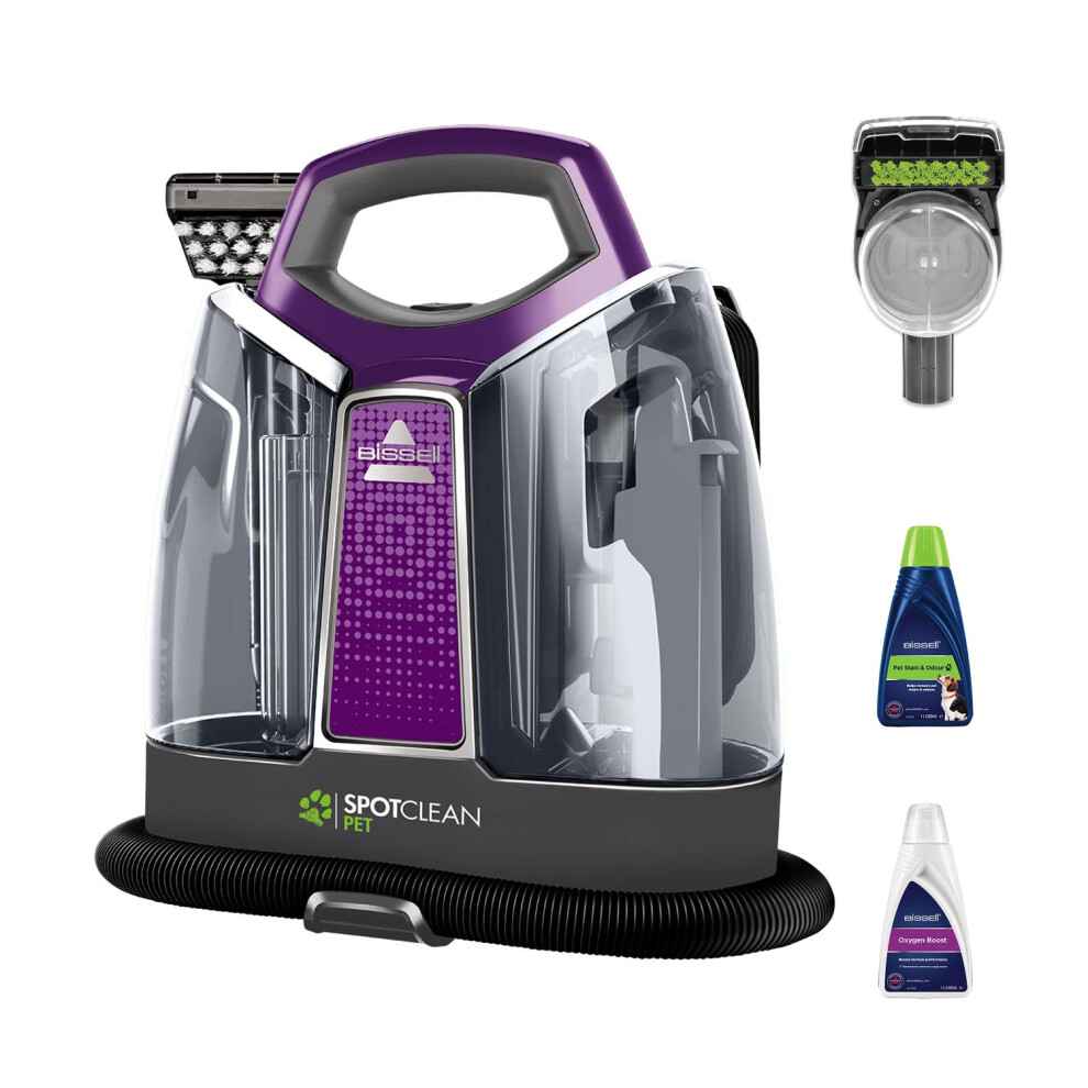 BISSELL SpotClean Pet | Portable Carpet Cleaner | Clean Carpets, Stairs, Upholstery, Car Seats | 36982 & Pet Stain & Odour Formula | 1085N | 1L & Pre-Treat Pet | 1137E