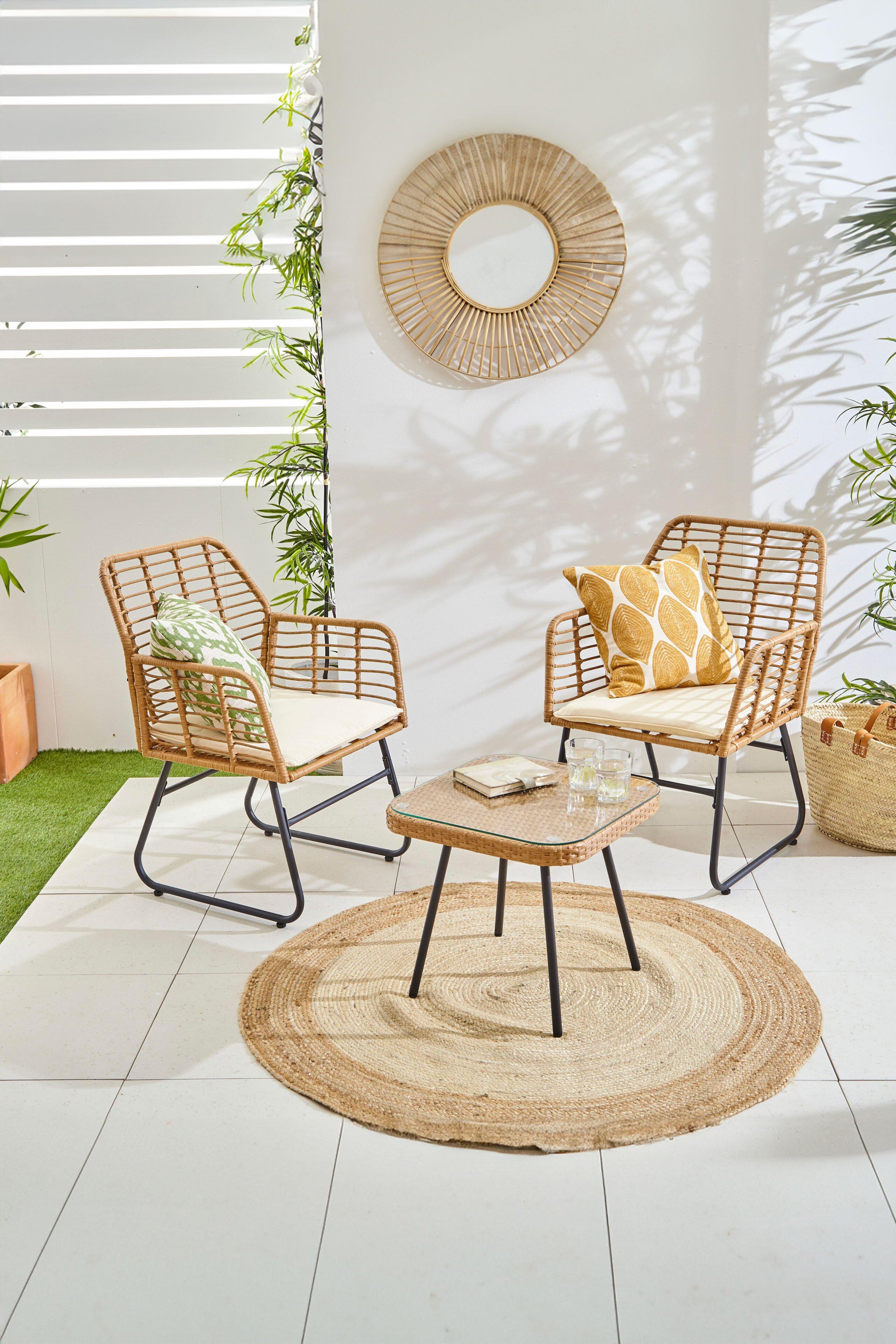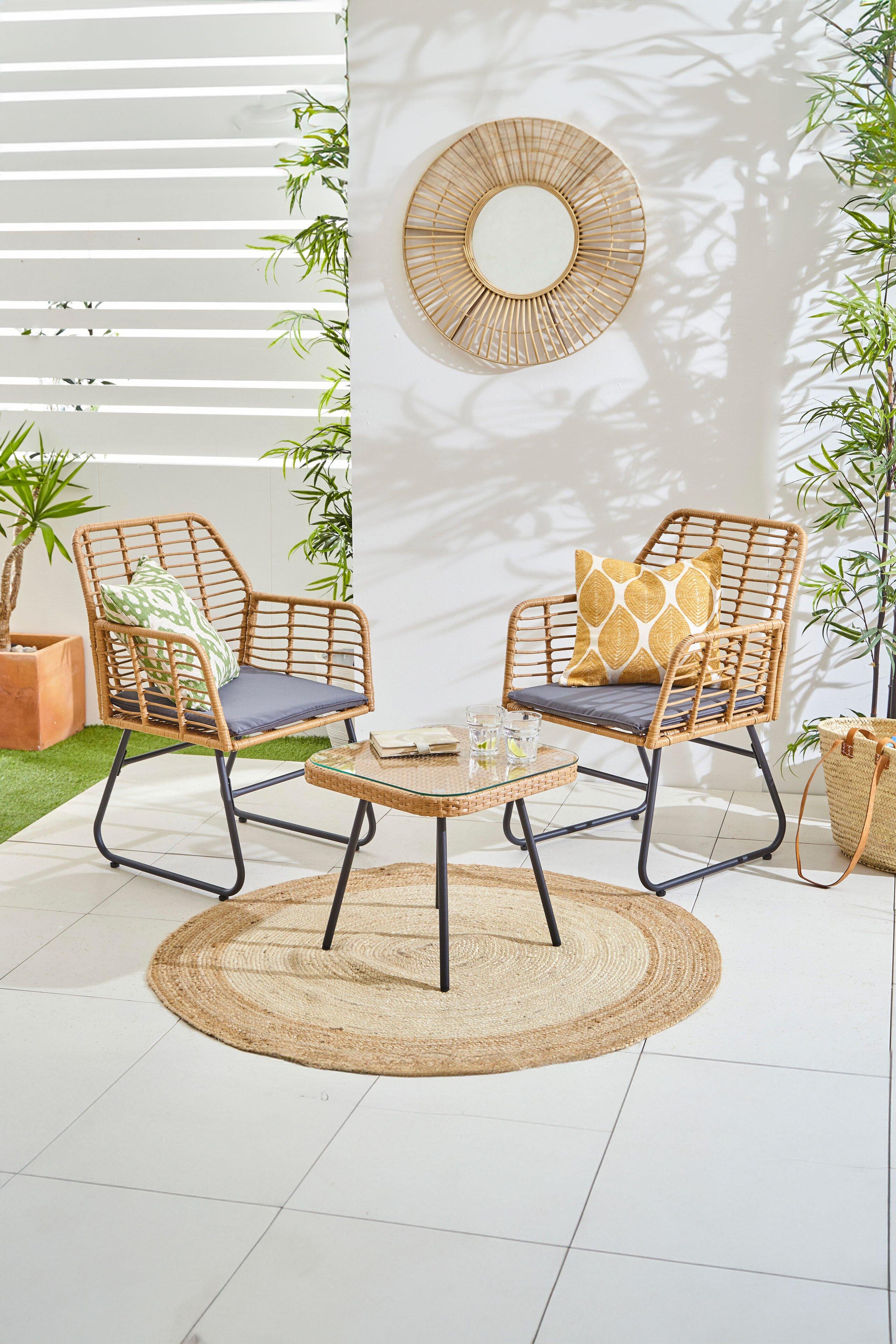 Store Direct Tasmania Rattan Effect Patio/Balcony Set Brown Bistro Table & 2 Cha