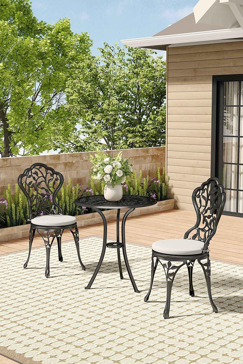 3pcs Leaf Hollowed Out Cast Aluminum Bistro Table and Chairs Set