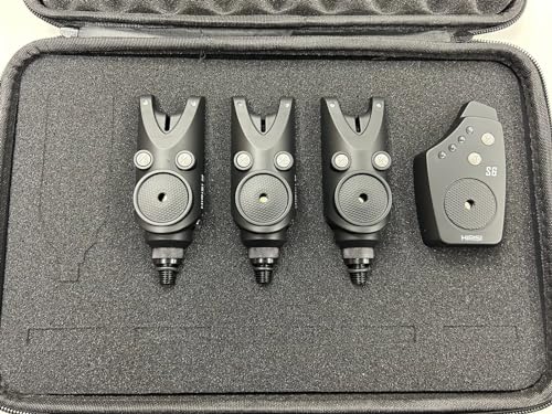 - S4 Wireless Bite Alarms Set - 3 in 1 - Carp Coarse Fishing Set - Adjustable Volume & Tone - 4 Way Receiver - Removable Snag Ears - Vibration