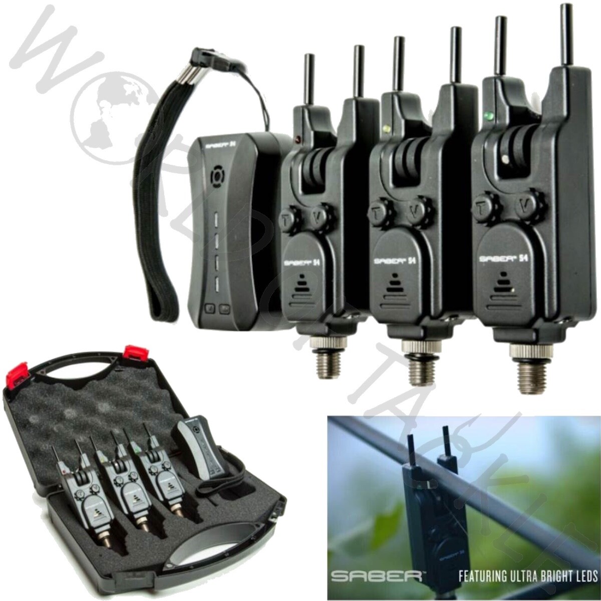 Saber S6 Wireless Bite Alarm Set 3+1 LED Alarms + Receiver Carp Fishing Tackle