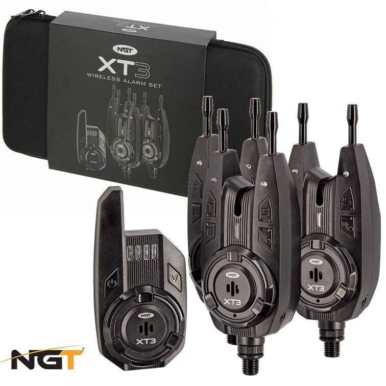 NGT XT3 Wireless Bite Alarms with Receiver Carp Fishing Alarm Set with Case XT-3