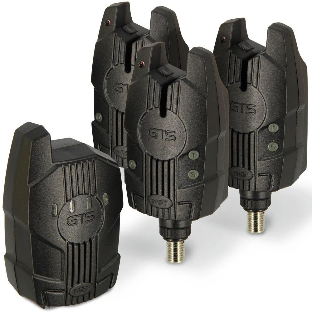 NGT GTS Pro 3pcs Wireless Carp Fishing Bite Alarms + Receiver & Case.