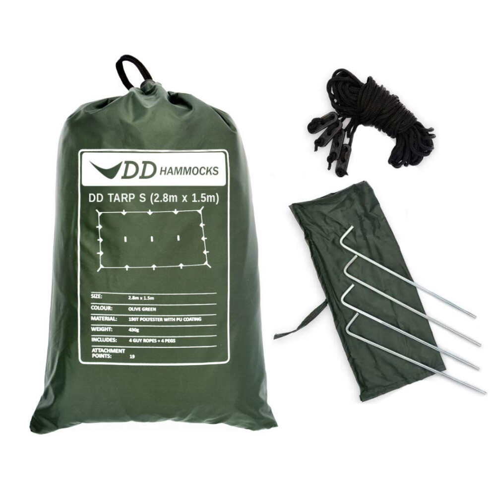 DD Hammocks - DD Tarp S - Compact Waterproof Tarpaulin 2.8m x 1.5m For Outdoor Camping And Bivi Bag Shelter