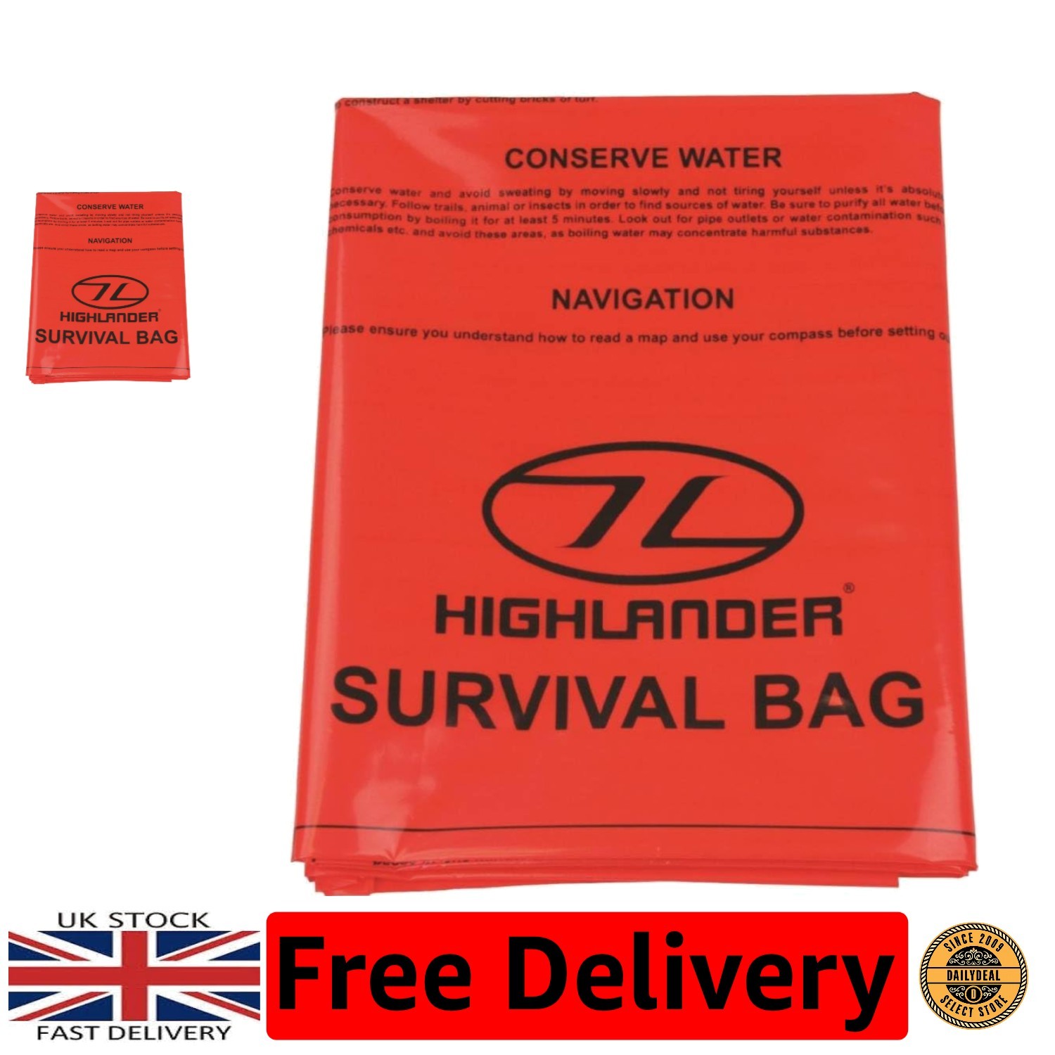 HIGHLANDER DOUBLE 210x120cm SURVIVAL BIVI BAG HIKING EMERGENCY XL SHELTER ORANGE