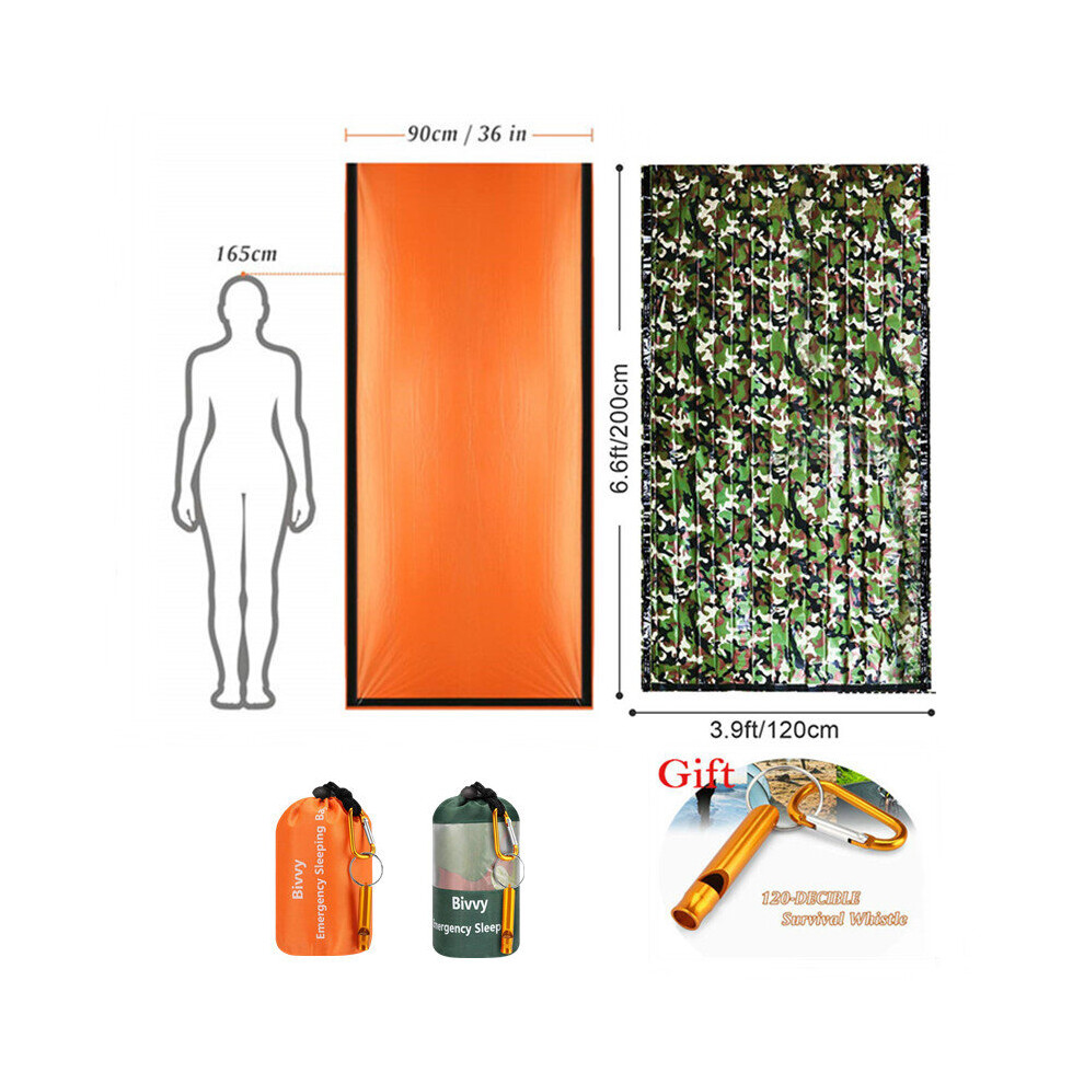 (a-Orange.Camo.gift) Emergency Sleeping Bags Thermal Emergency Blankets Ultralight Survival Waterproof Bivy Sack Multi Survival Gear Hiking,Camping