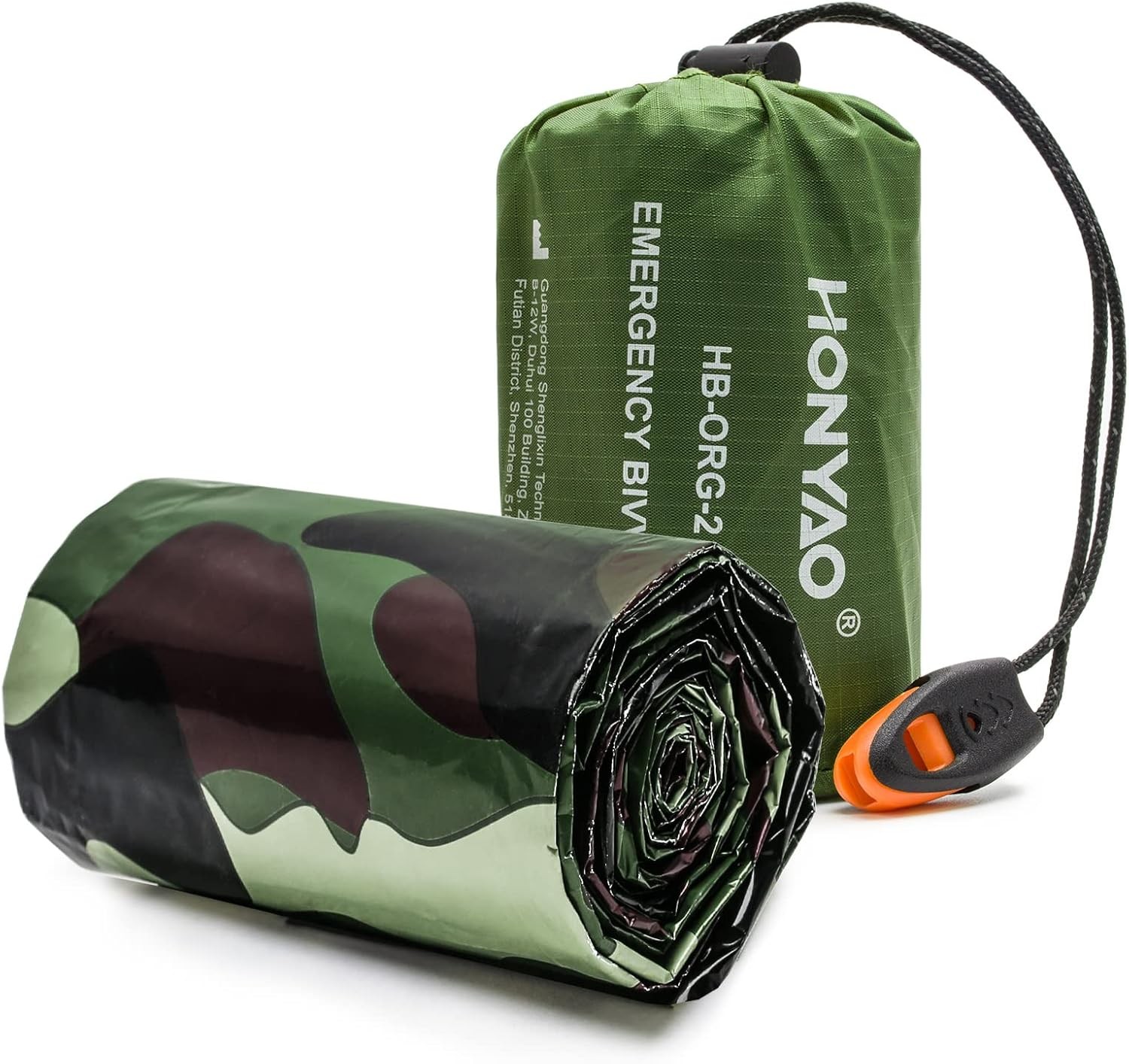 HONYAO Emergency Bivvy Bag, Survival Sleeping Bivy Bags, Rescue Blanket Portable Waterproof Shelter with Survival Whistle, Reusable for Outdoor Camping, Hiking - 1 Pack