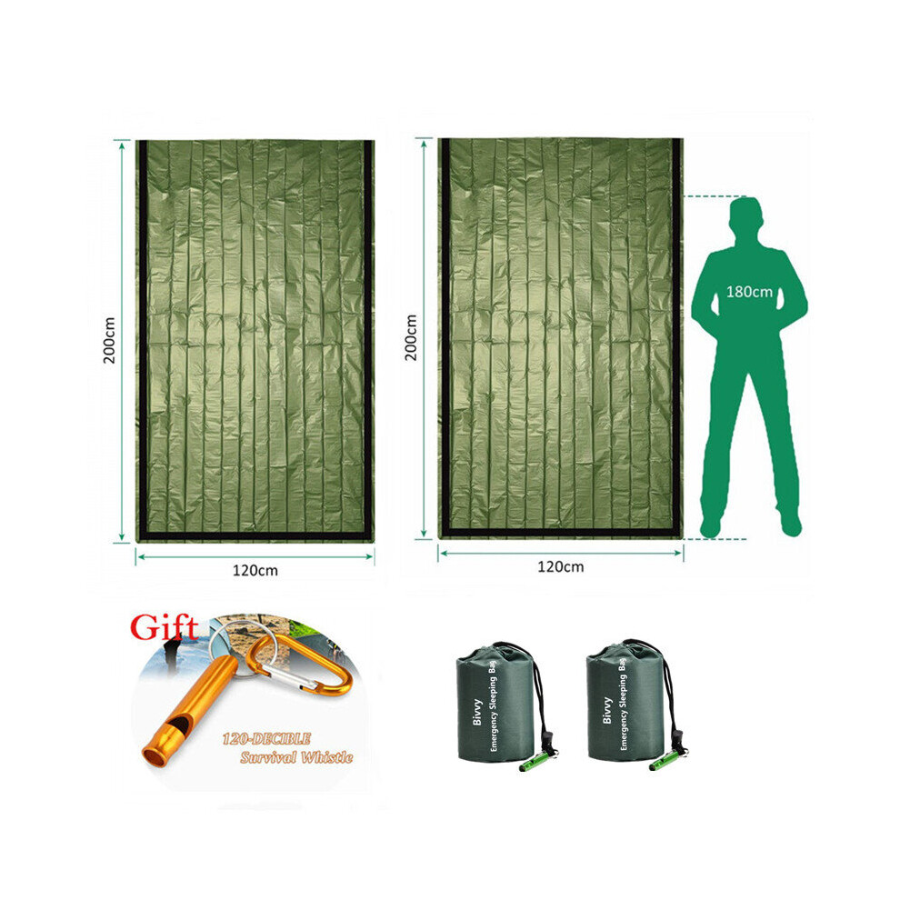 2PCS Emergency Sleeping Bag,Thermal Bivy Sack Survival Shelter Blanket Bags NEW.