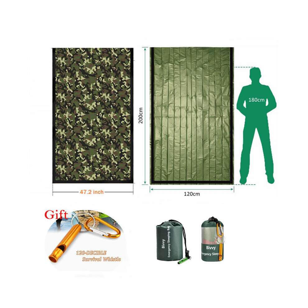(a-Green.Camo.gift) Emergency Sleeping Bags Thermal Emergency Blankets Ultralight Survival Waterproof Bivy Sack Multi Survival Gear Hiking,Camping