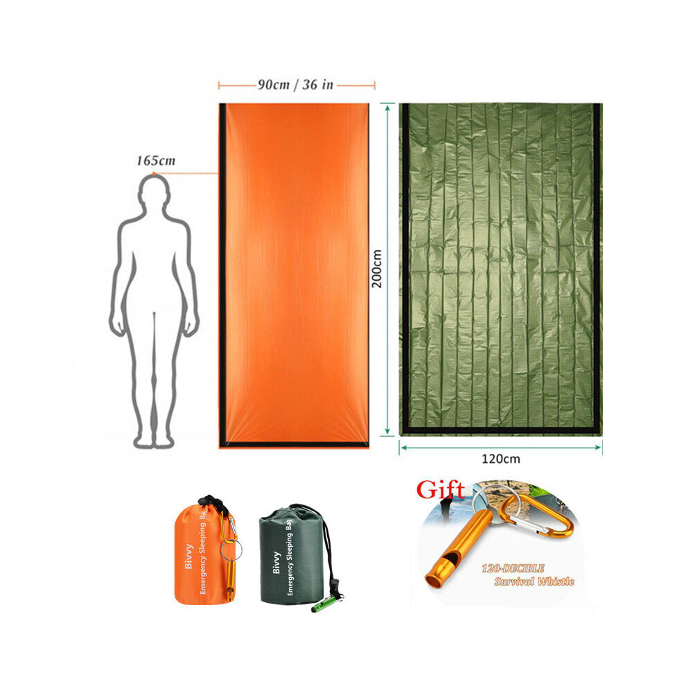 (a-Orange.Green.gift) Emergency Sleeping Bags Thermal Emergency Blankets Ultralight Survival Waterproof Bivy Sack Multi Survival Gear Hiking,Camping