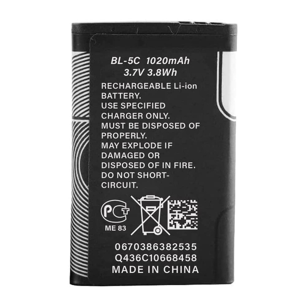 Replacement Cell Phone Li-ion Battery 1020mah 3.7v For Nokia Bl-5c Rechargeable