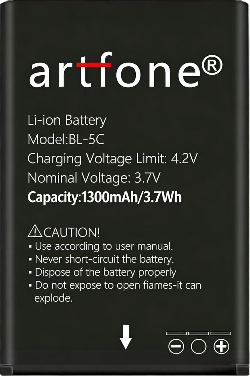 artfone BL-5C Battery (1300mAh) for CS181/F20/F30/CF241A/C10/G3/G6 and any BL-5