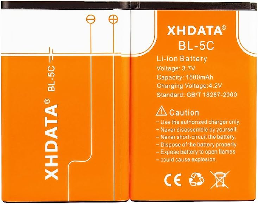 XHDATA Rechargeable Battery BL-5C 3.7V 1500Mah for Radio 2 Pieces Orange