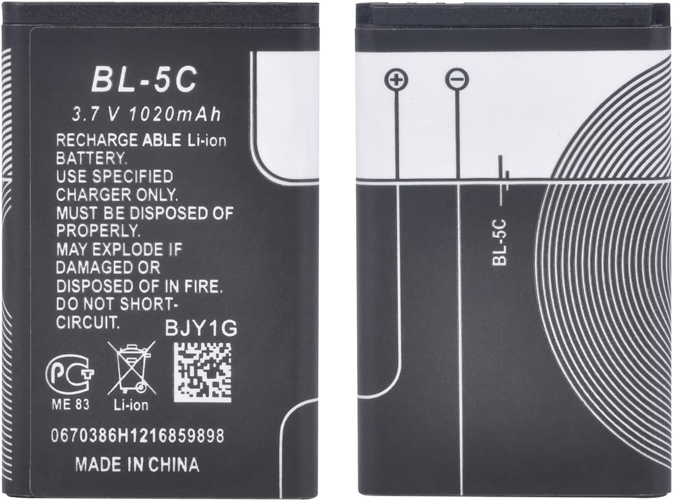 BL-5C 3.7V 1020mAh Rechargeable Battery - Compatible with Nokia Phones & Household Devices - Overcharge Protection for Radios, Speakers, Torches