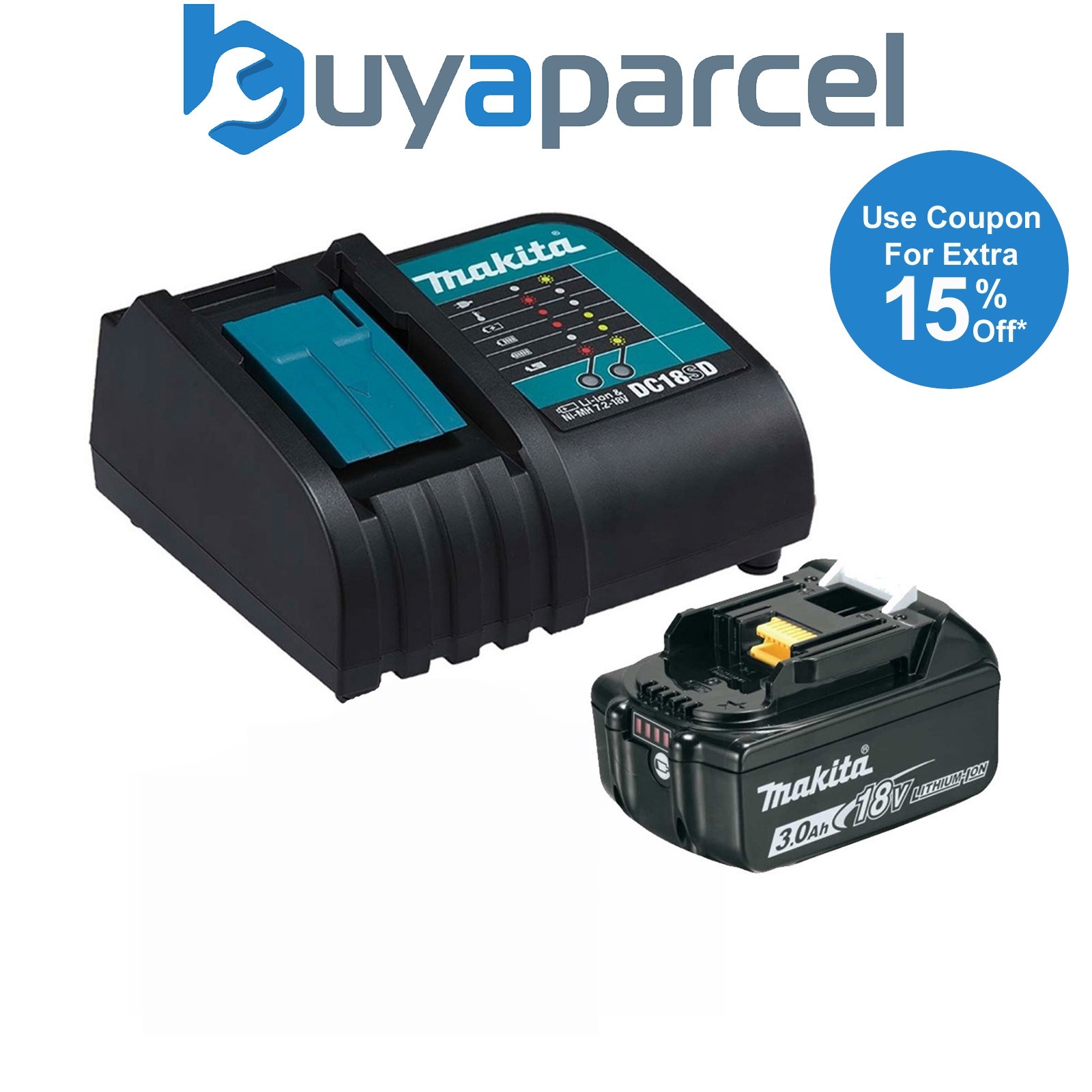 Makita BL1830 Lithium Ion 3.0ah Battery + DC18SD 9.6-18v 30 Minute Fast Charger