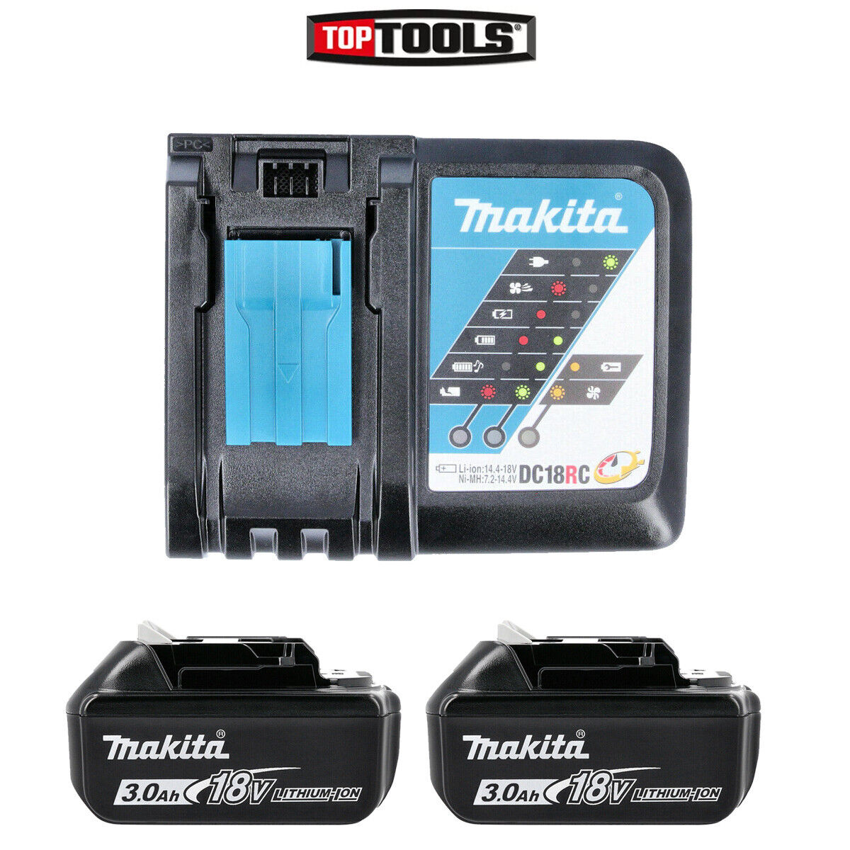 2 x Genuine Makita 18V 3.0Ah LXT Lithium Battery BL1830 + DC18RC Fast Charger