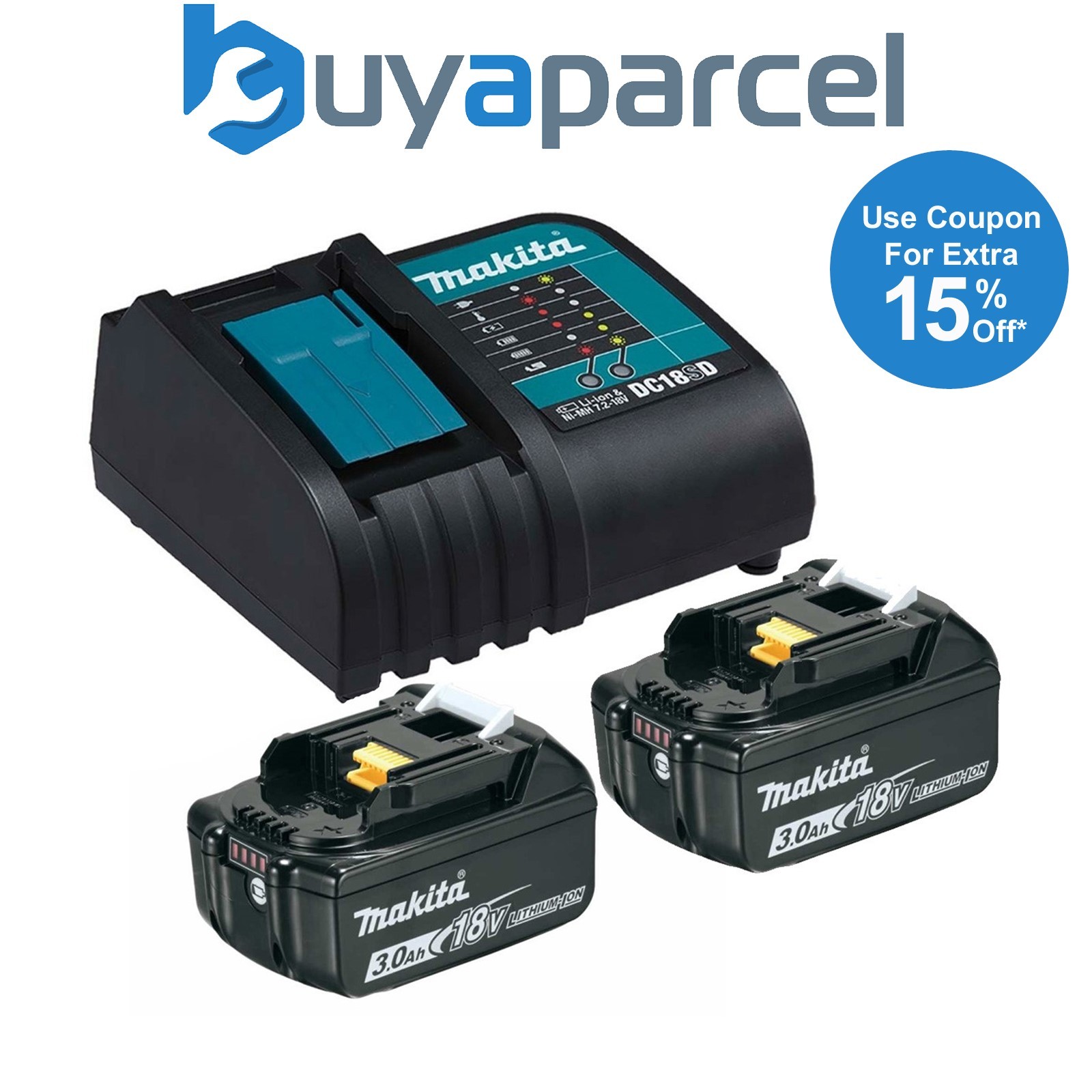 2 x Makita BL1830 Li-Ion 3.0ah Battery + DC18SD 9.6-18v 30 Minute Fast Charger