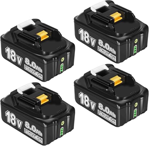 4Pack 8.0Ah 18V BL186 Replacemnet for Makita Battery Compatible with Makita Battery BL1860 BL1860B BL1850 BL1840 BL1830 DC18RA DC18RC DC18RD (4ACK)