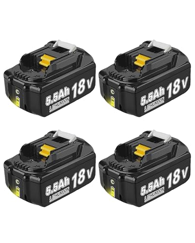 4 Pack 5500mAh Battery Compatible with makita 18V 5.5Ah batteries BL1850B BL1850 BL1840 BL1830B BL1830 BL1815 194205-3 194309-1 LXT400 Replacement Batteries 5.0Ah with LED Indicator