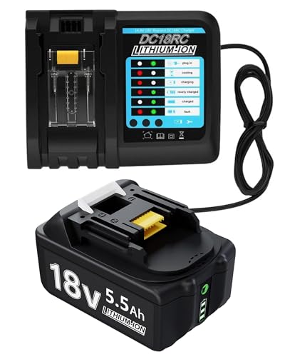 5500mAh Battery and Charger for makita 18V BL1850B BL1850 BL1840 BL1830B BL1830 BL1815 194205-3 194309-1 LXT400,5.5Ah Replacement Batteries with Power Supply DC18RC 4A