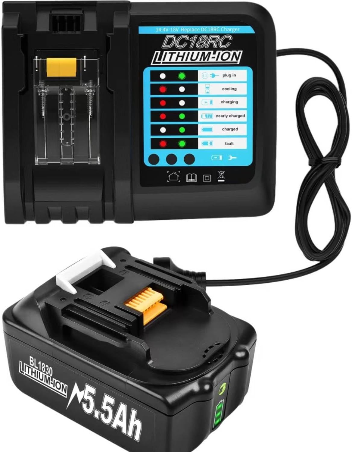18V 5.5Ah Battery and Charger for BL1850B BL1850 BL1840 BL1830B B