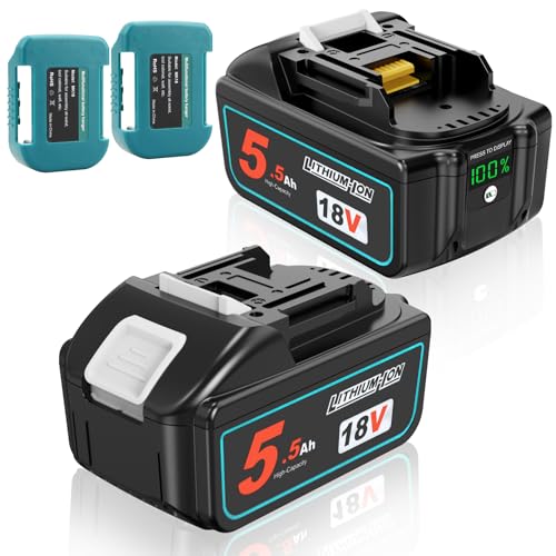 QUPERR 2-Pack 5500mAh Replacement for Makita 18V Battery-High Capacity,Compatible with Makita Lithium-Ion LXT Battery Free two battery holders-Fits BL1850 BL1850B BL1840 BL1830 BL1860 Cordless Tools
