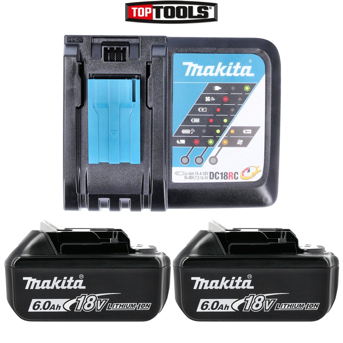 Makita Genuine DC18RC 7.2 - 18V Li-Ion Fast Charger + 2 x BL1860 6Ah Batteries