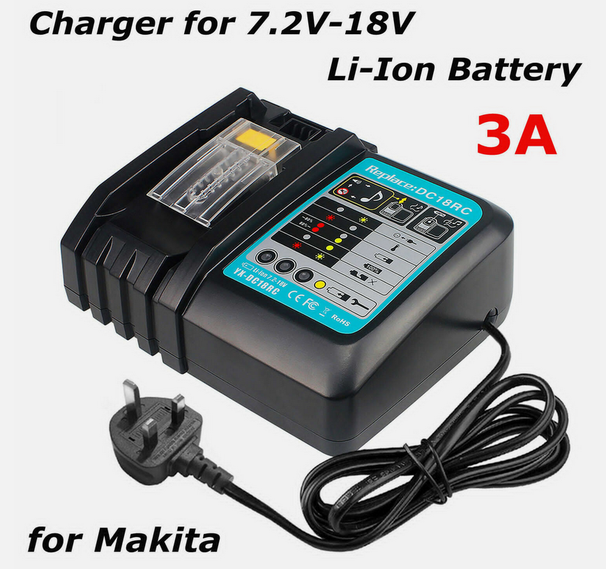Makita Genuine DC18RC 7.2 - 18V Li-Ion Fast Charger + 1 x BL1860 6Ah Battery