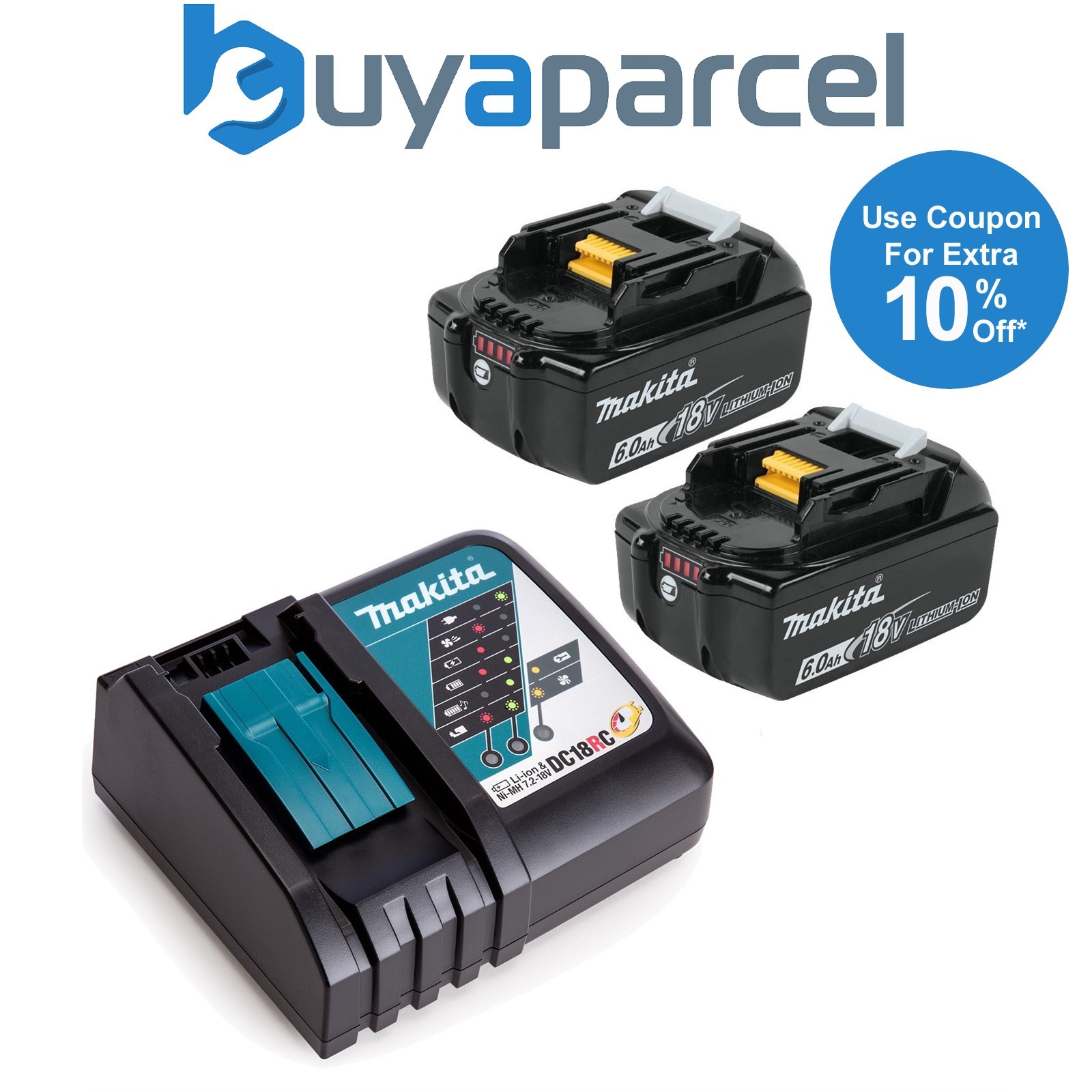 Makita BL1860 18v 6.0ah Lithium Batteries Twin Pack + DC18RC Fast Charger