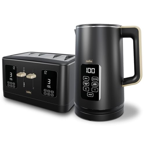 Black 1600W 4 Slice Toaster, 1.7L 3000W Digital Kettle | Toaster with Detachable Crumb Tray, Digital Control Panel with Countdown Timer, BPA-Free Auto Shut-off Electric Temperature Control Kettle