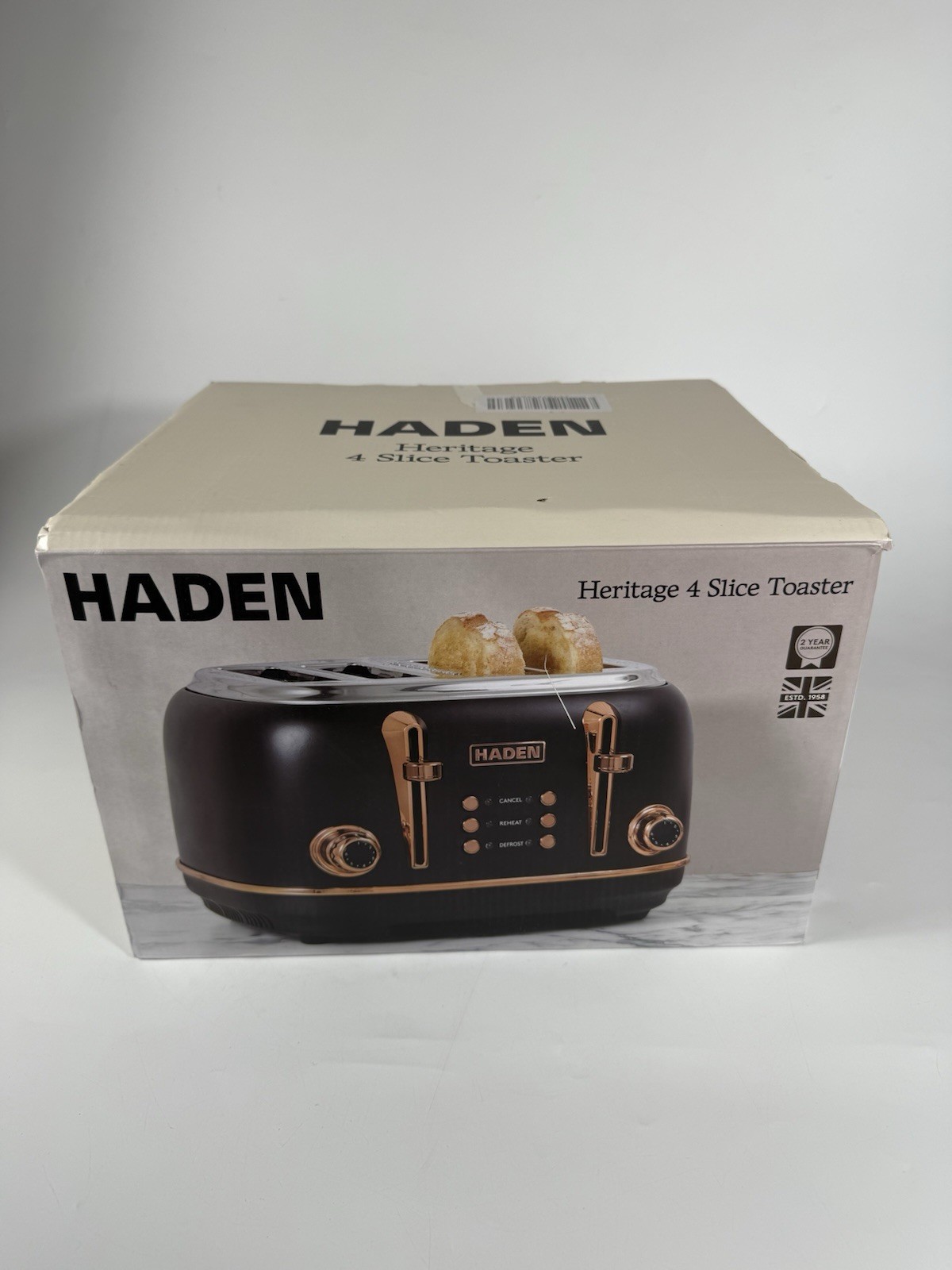 Haden Heritage Black & Copper 4 Slice Toaster Self-centring Function