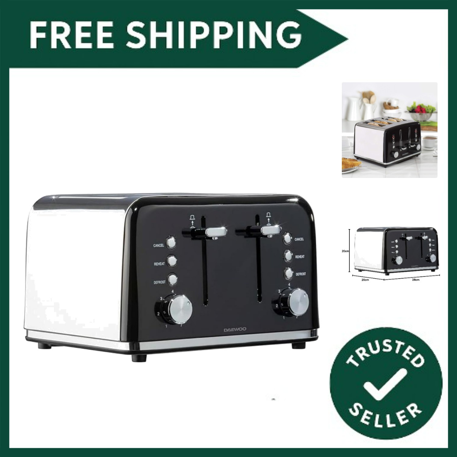 Daewoo Black 4 Slice Toaster