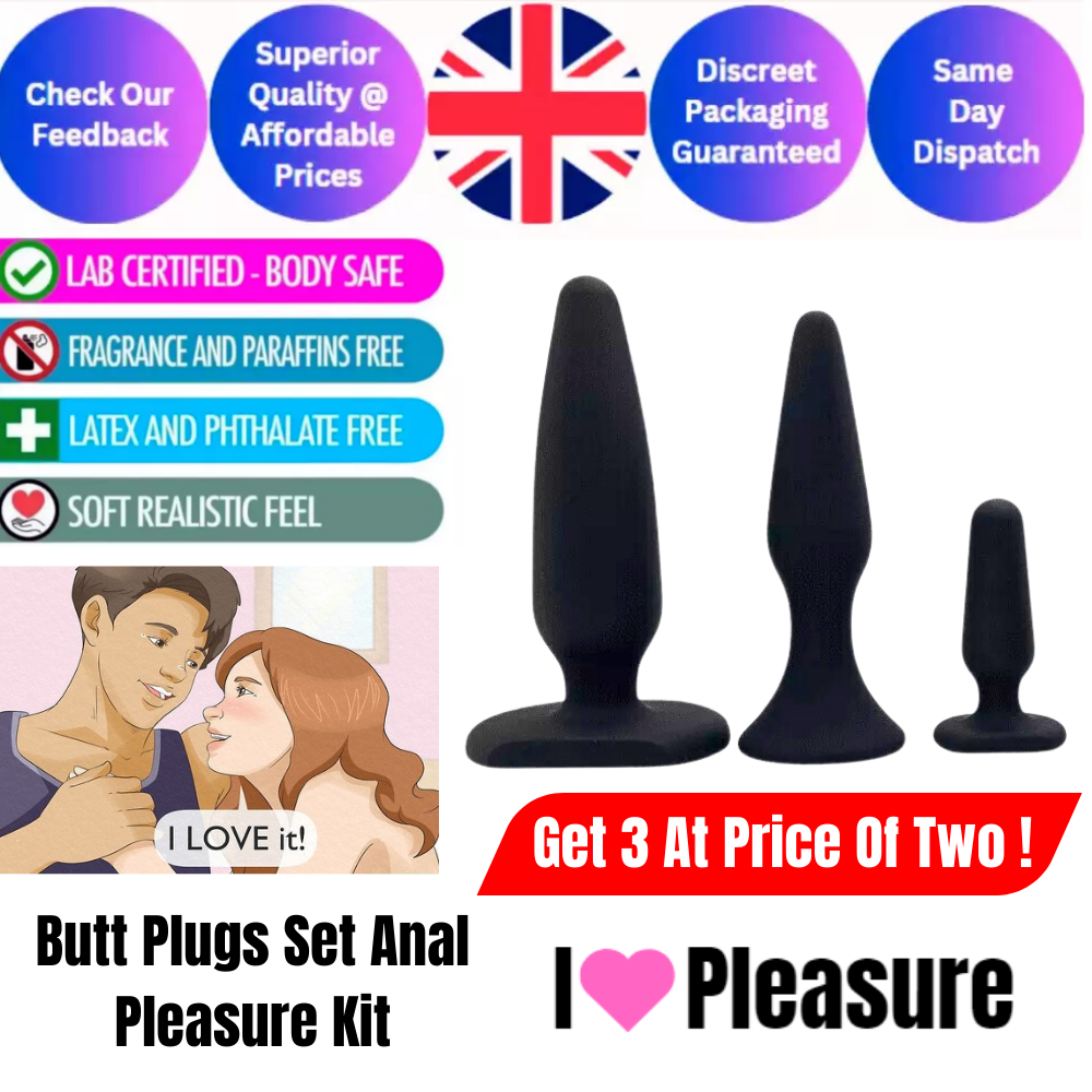 Butt plug 3 Piece Kit 4 INCH ANAL TRAINER SET Smooth Butt Plug Sex Toy BLACK