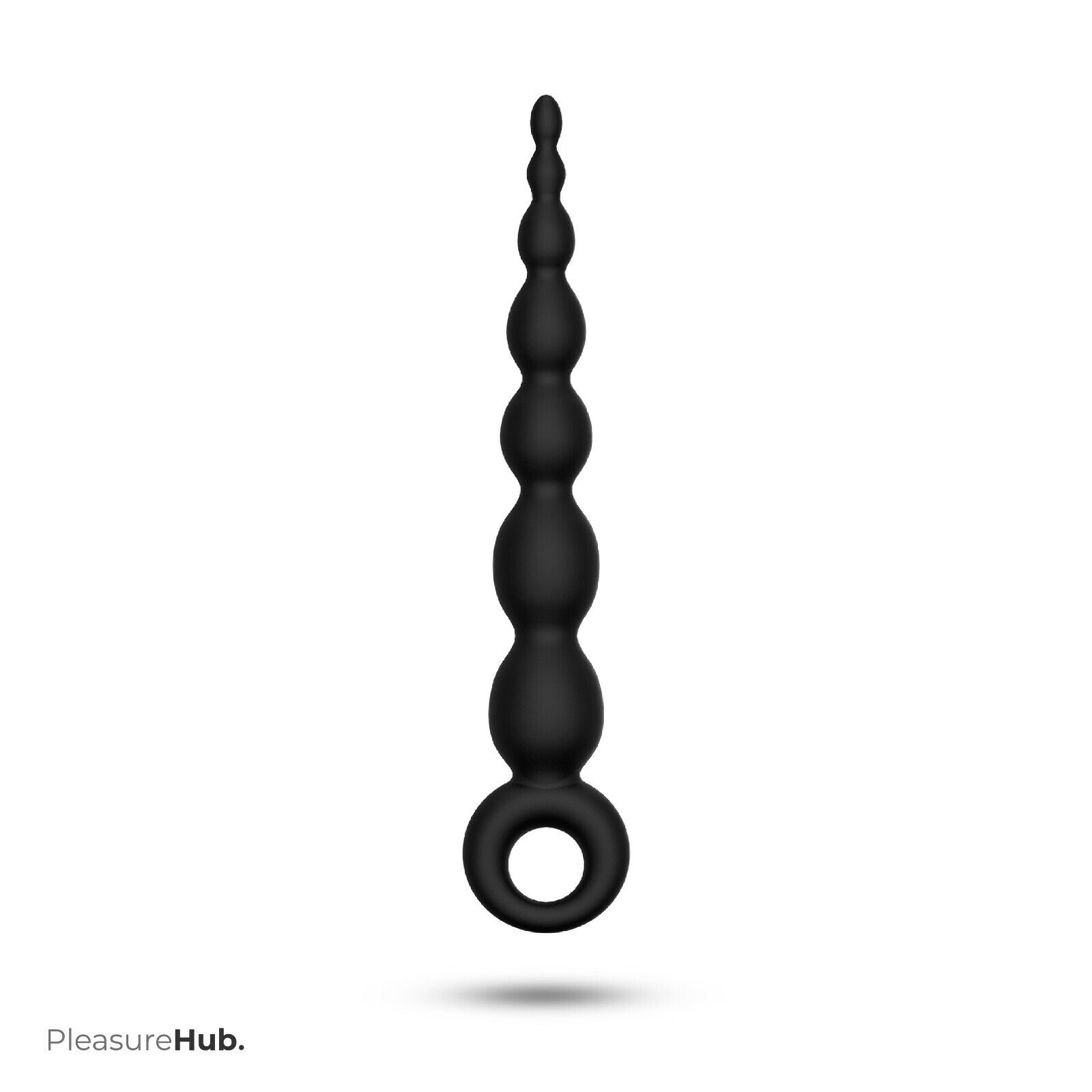 Black Anal Beads & Ring Pull - Beaded Anal Butt Plug Sex Toy for Couples