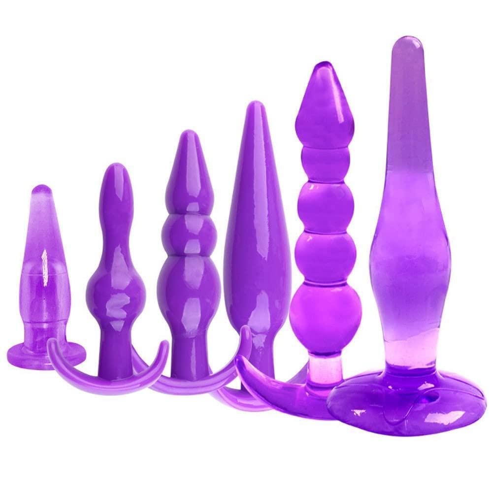 6pcs Purple Silicone Butt Plug Set - Anal Training Sex Toys with T-Bar Handle