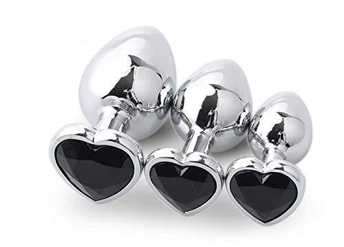 3pcs Black Jewelled Base Stainless Steel Anal Butt Plug Kit with Heart Plug