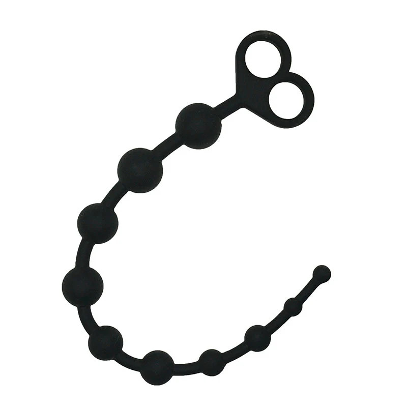 Black Silicone Anal Beads with Double Hole Pull Ring - Flexible Anal Beaded Plug