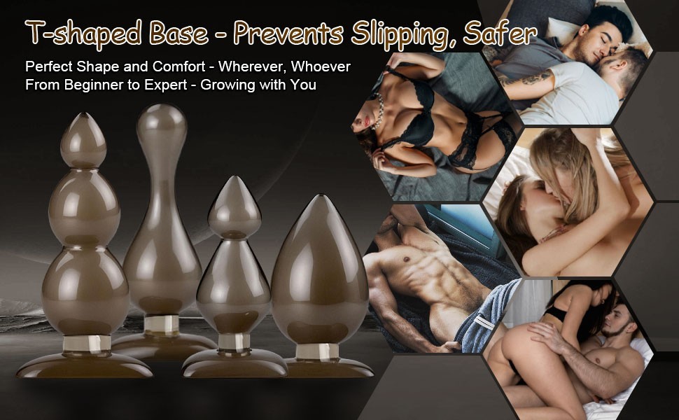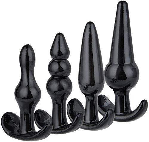 4pcs Black Silicone Butt Plug Set - Anal Training Sex Toys with T-Bar Handle