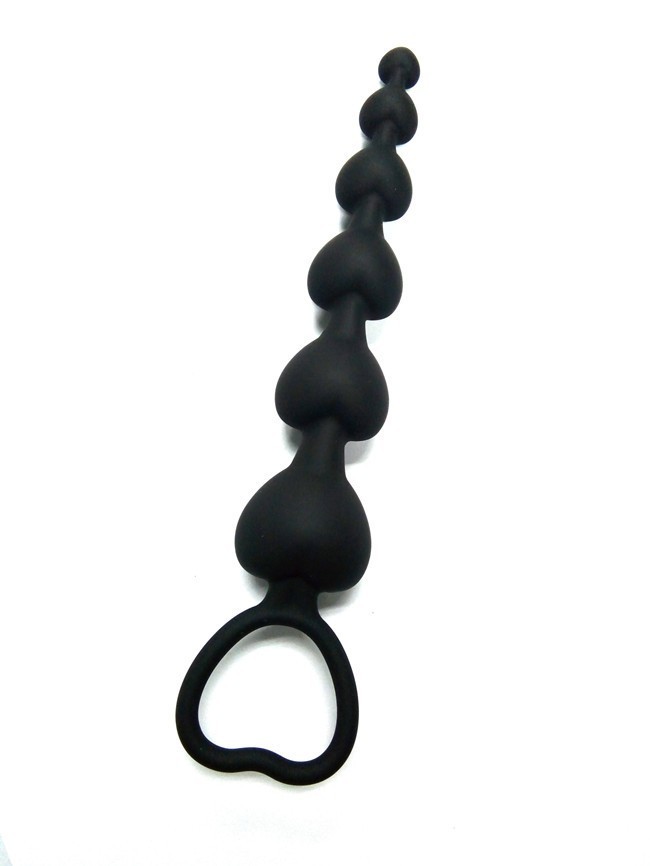 Black Anal Beads with Heart Shaped Handle - Silicone Beaded Anal Butt Plug Toy