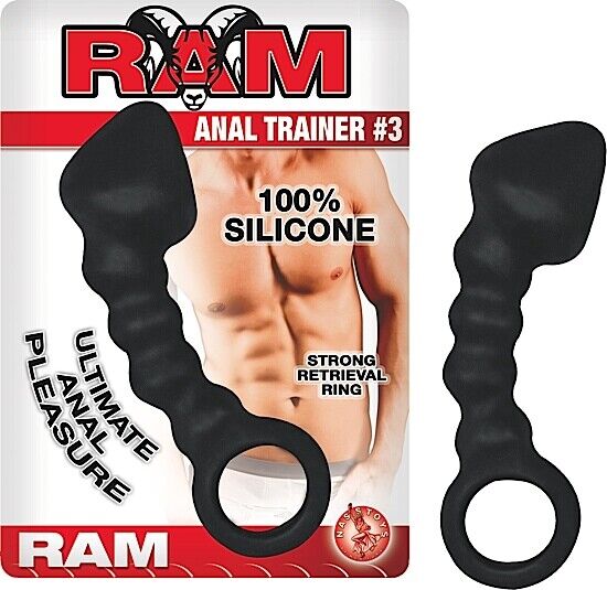Ram Anal Trainer Black Silicone Beads Waterproof Butt Plug Ring Pull Gay Sex Toy