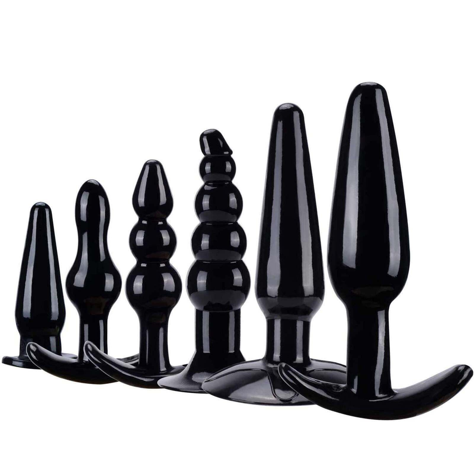 6pcs Black Silicone Anal Butt Plug Sex Toy Kit - Anal Training Expansion Set