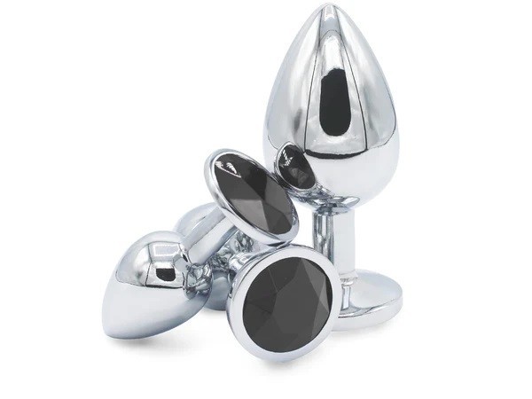3pcs Black Jewelled Base Metal Butt Plug Set Sex Toy - Stainless Steel Anal Plug