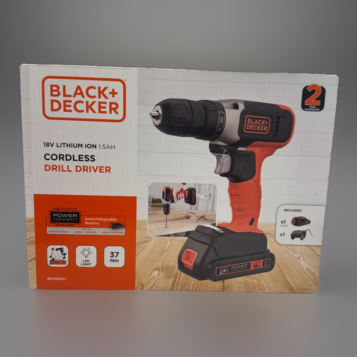 BLACK+DECKER 18V Cordless 37Nm Torque Drill Driver with LED Worklight 1.5Ah -NEW