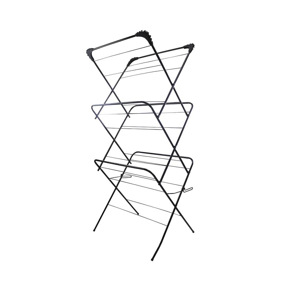 Colombo – Vertical 3 Tier Steel Clothes Airer 16m Drying Rack with Wheels, Hangers and Socks Hooks - Black